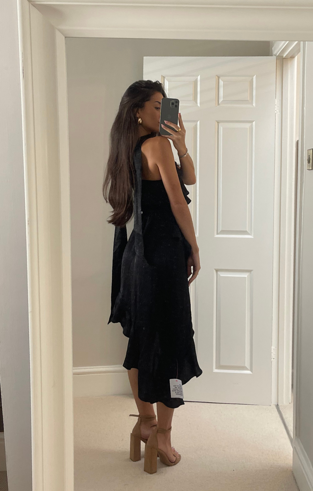 Miss Selfridge Satin Asym Hem Ruffle Dress With Scarf In BlackFeaturing: