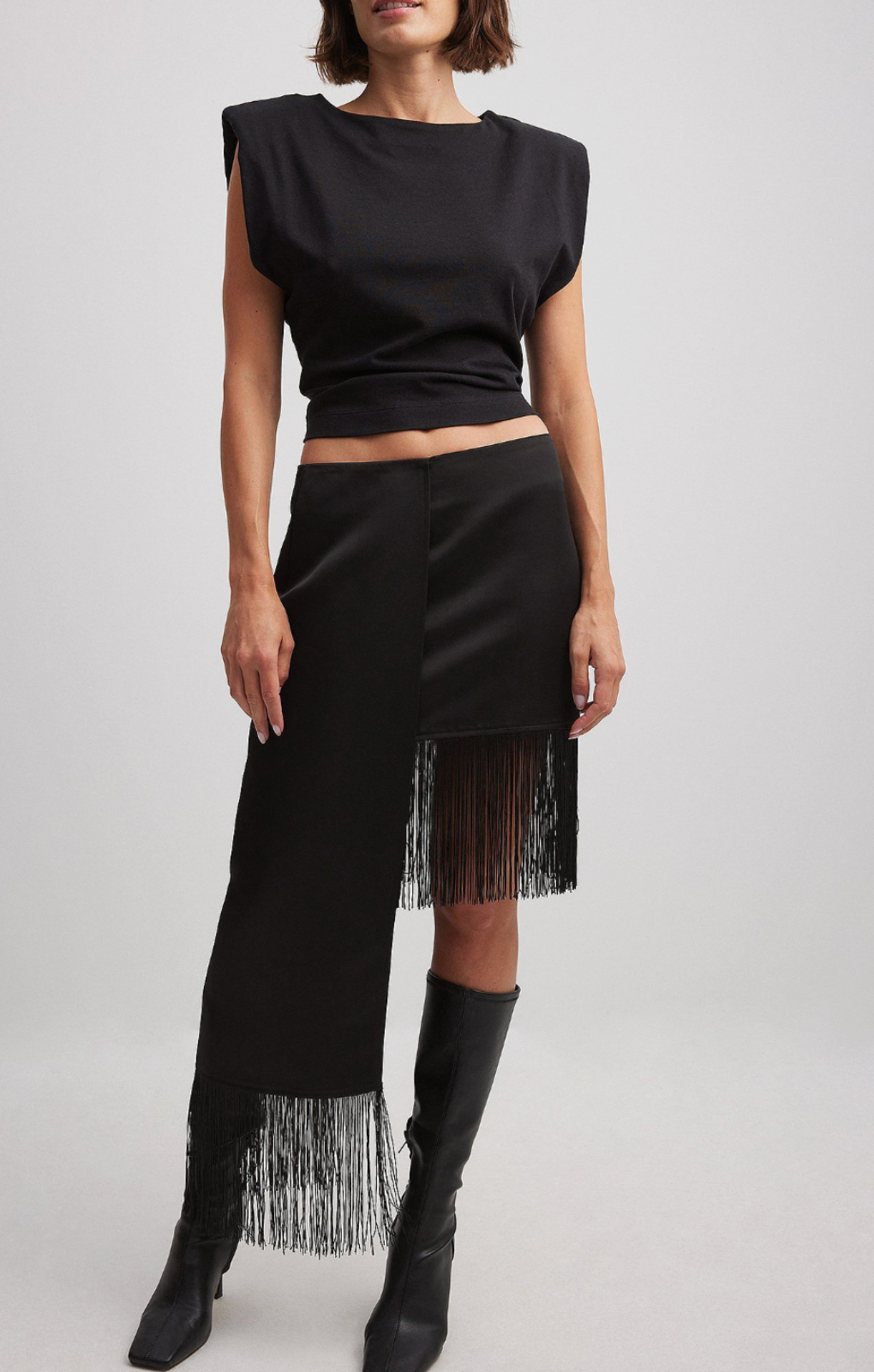 NA-KD x Josefine Hj Fringe Mini Skirt In Black