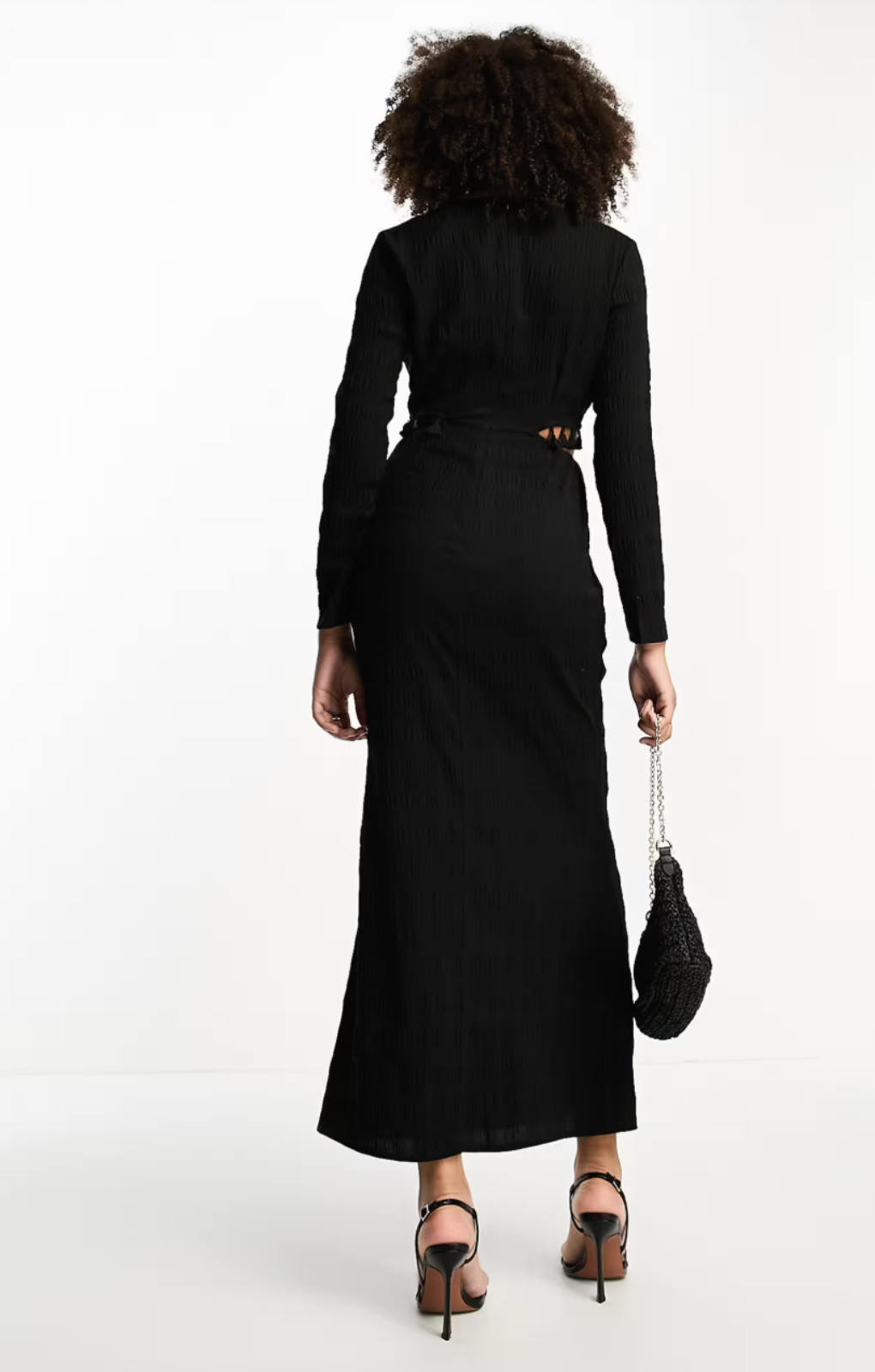 Never Fully Dressed Textured Cut-Out Tassel Midaxi Dress In Black for stand out party style... all other dresses can go home! Features: