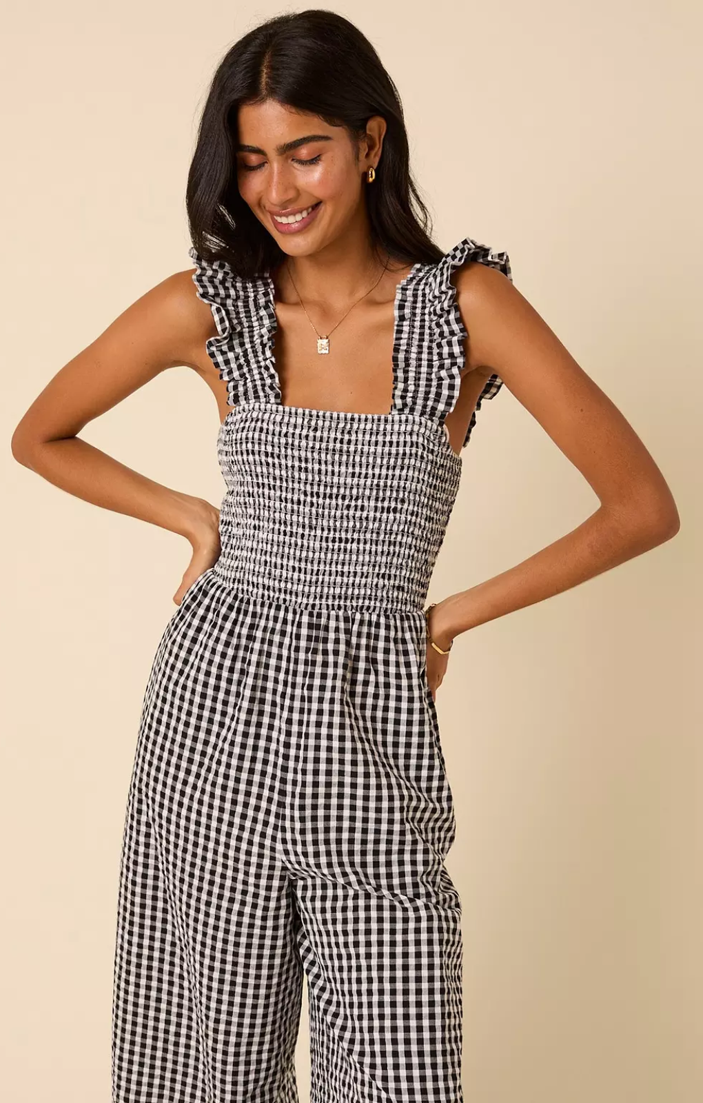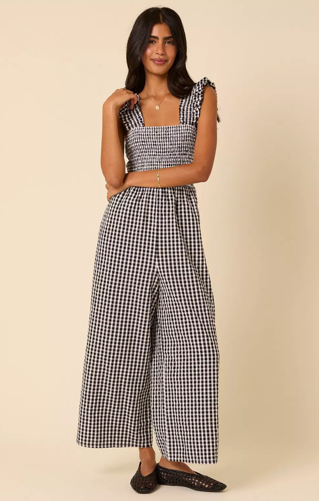 An effortless, all-in-one outfit designed for comfort and style. They Maya jumpsuit has frilled wide straps that are bra-friendly for added convenience.