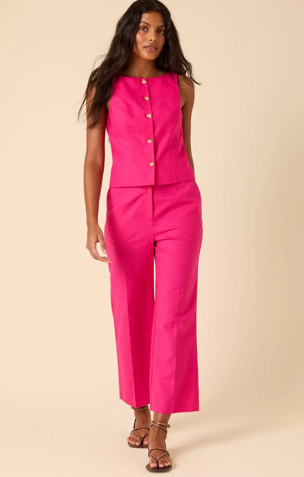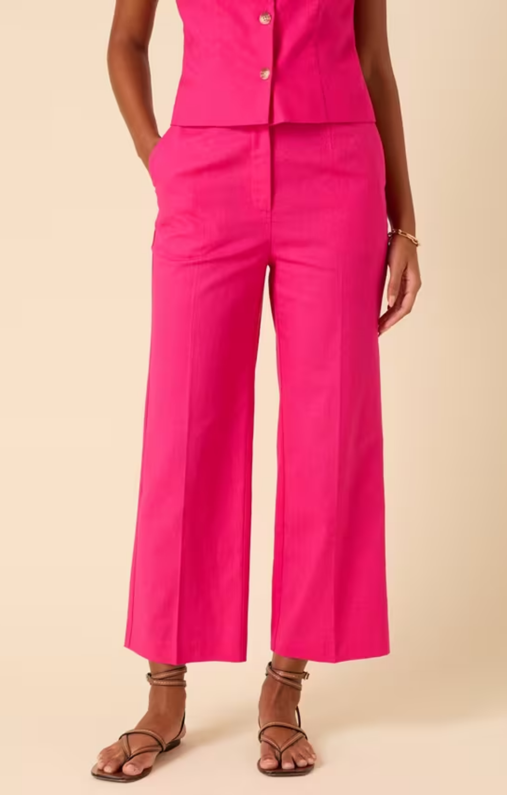 These high-waisted trousers are cut with a clean front and a wide-leg, cropped silhouette with clean pleats for a tailored look.