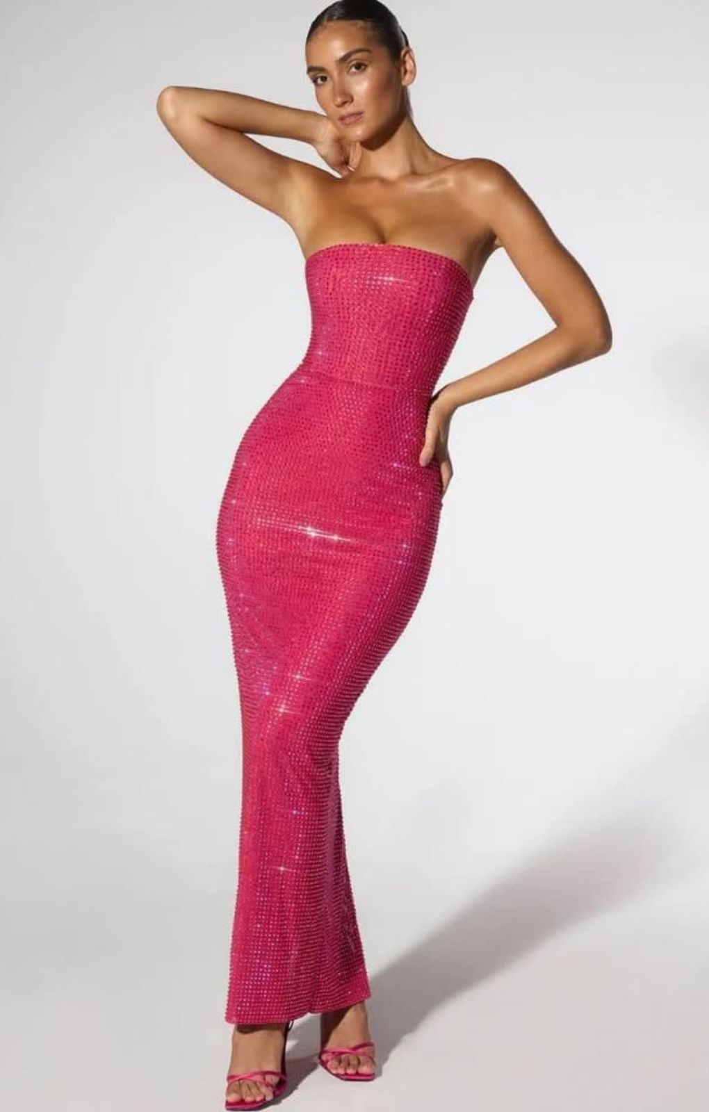 Oh Polly Daleyza Embellished Strapless Evening Gown in Hot Pink