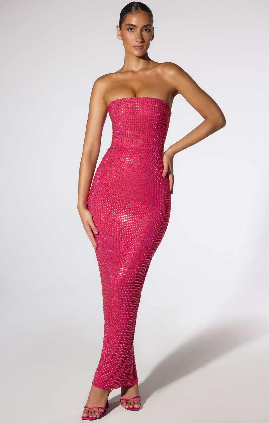 Oh Polly Daleyza Embellished Strapless Evening Gown in Hot Pink