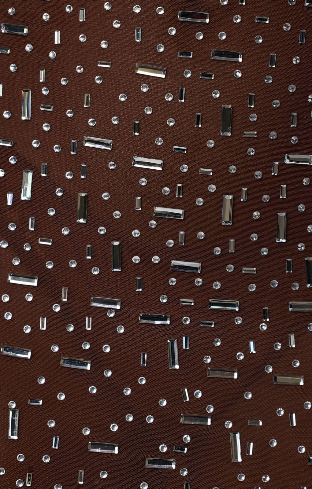 Single layer 20D mesh fabric with delicate hotfix embellishment throughout (85% Polyester, 15% Elastane). Unlined and sheer • we recommend styling with our Oh Polly Intimates range. This garment contains delicate artisanal hand embellishment that may become loose overtime. Additional embellishment has been provided for repairs.