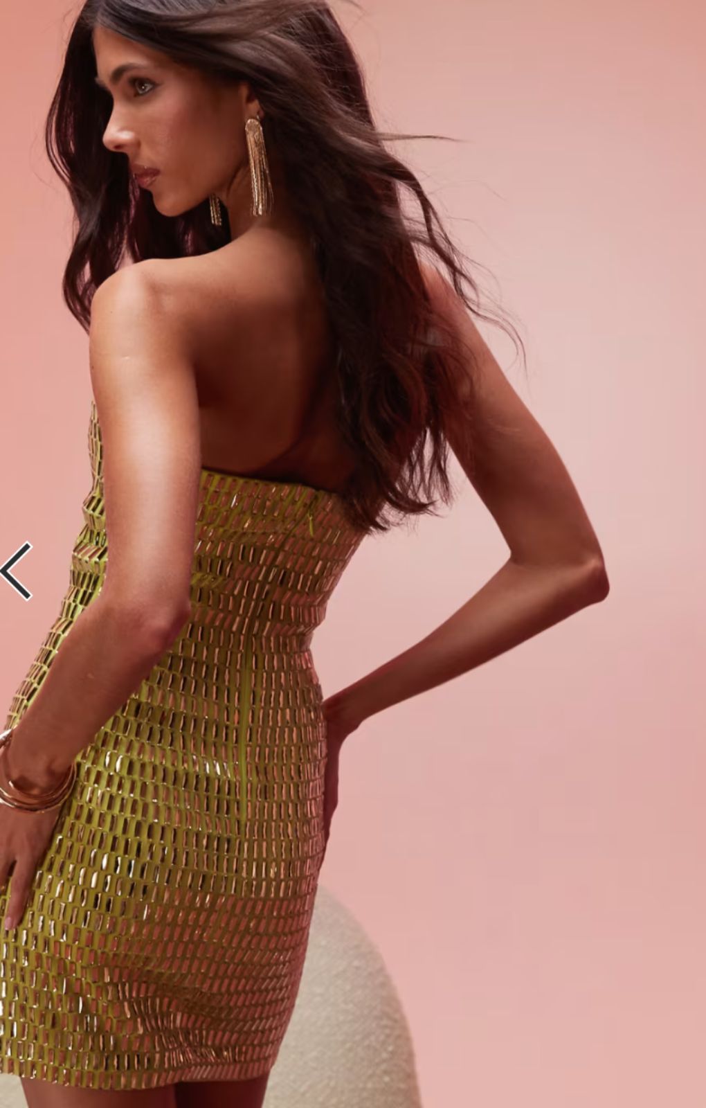Oh Polly Aurora Embellished Bandeau Mini Dress in Pear Green