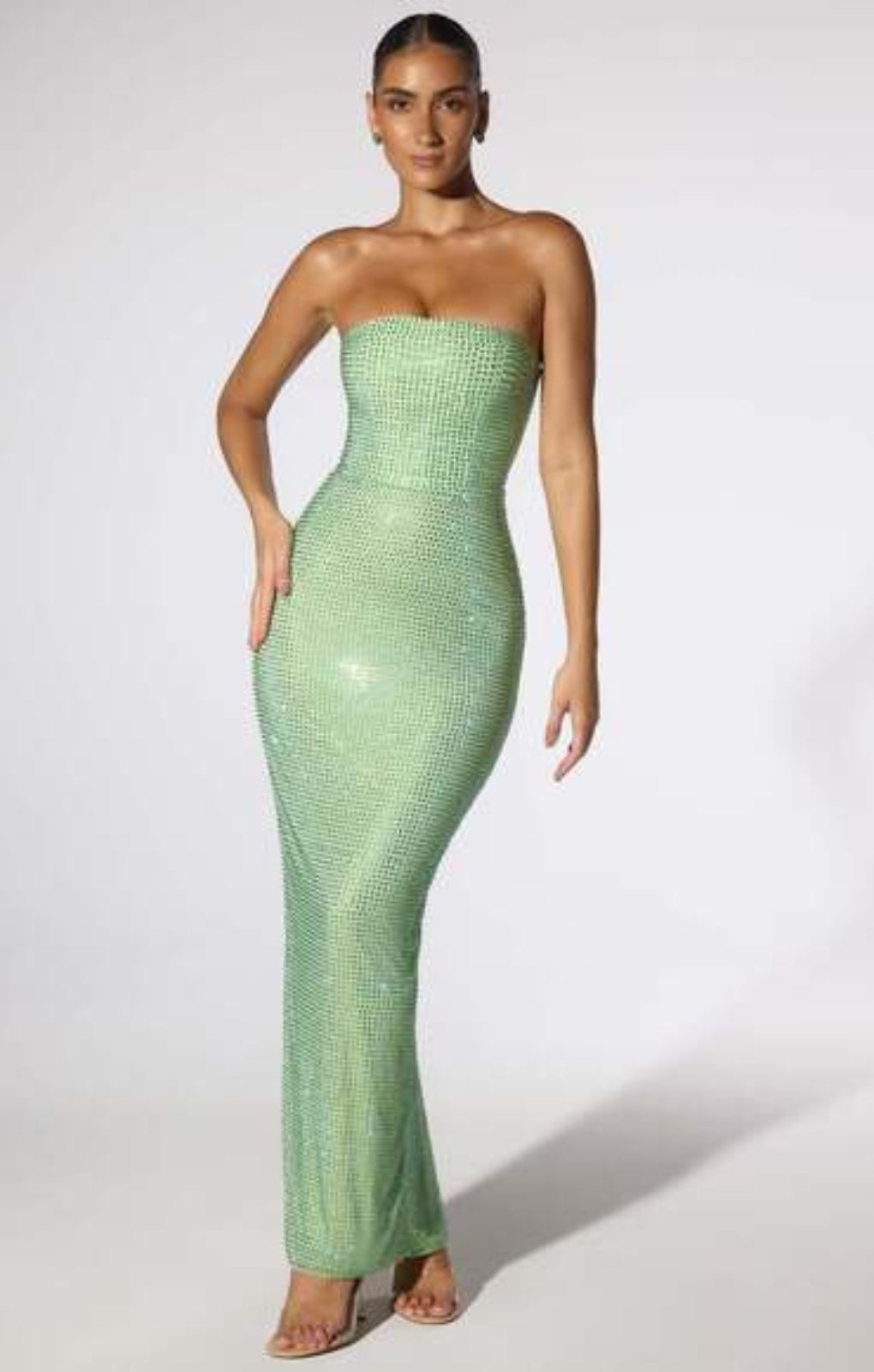 Oh Polly Daleyza Embellished Strapless Evening Gown in Sage Green