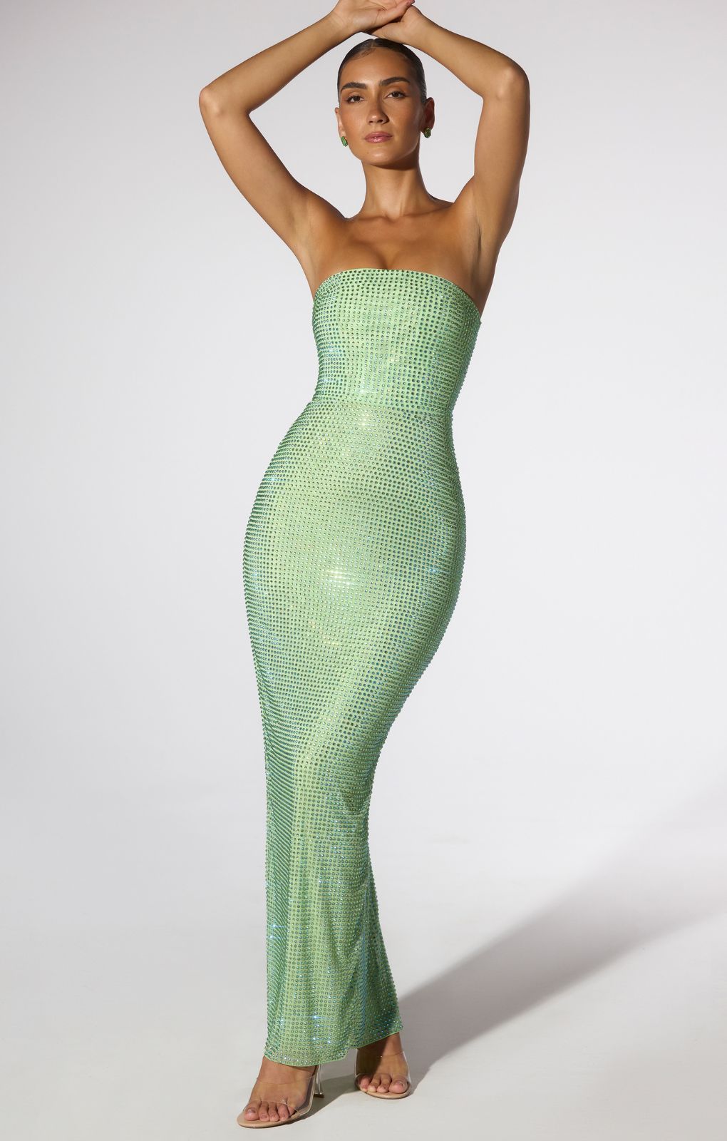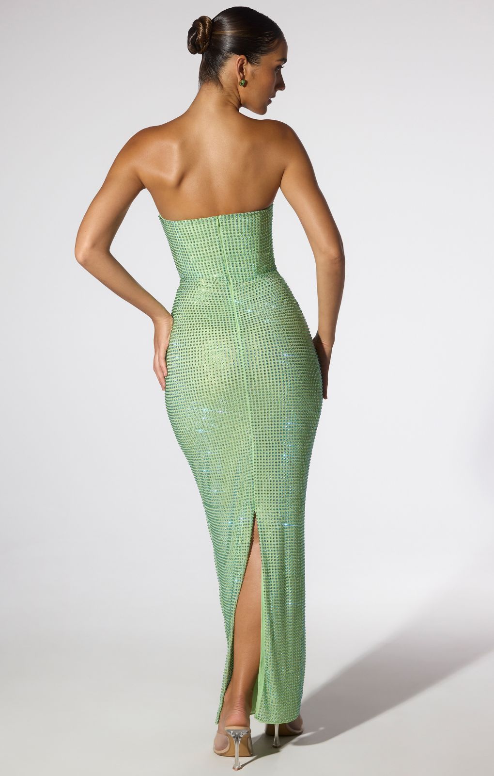 Oh Polly Daleyza Embellished Strapless Evening Gown in Sage Green