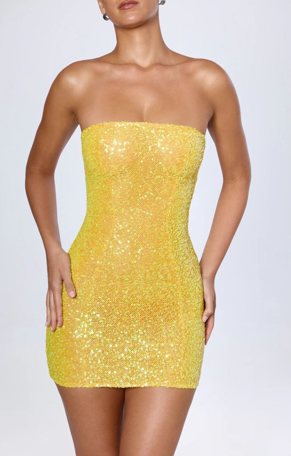 Oh Polly Embellished Bandeau Mini Dress in Buttercup