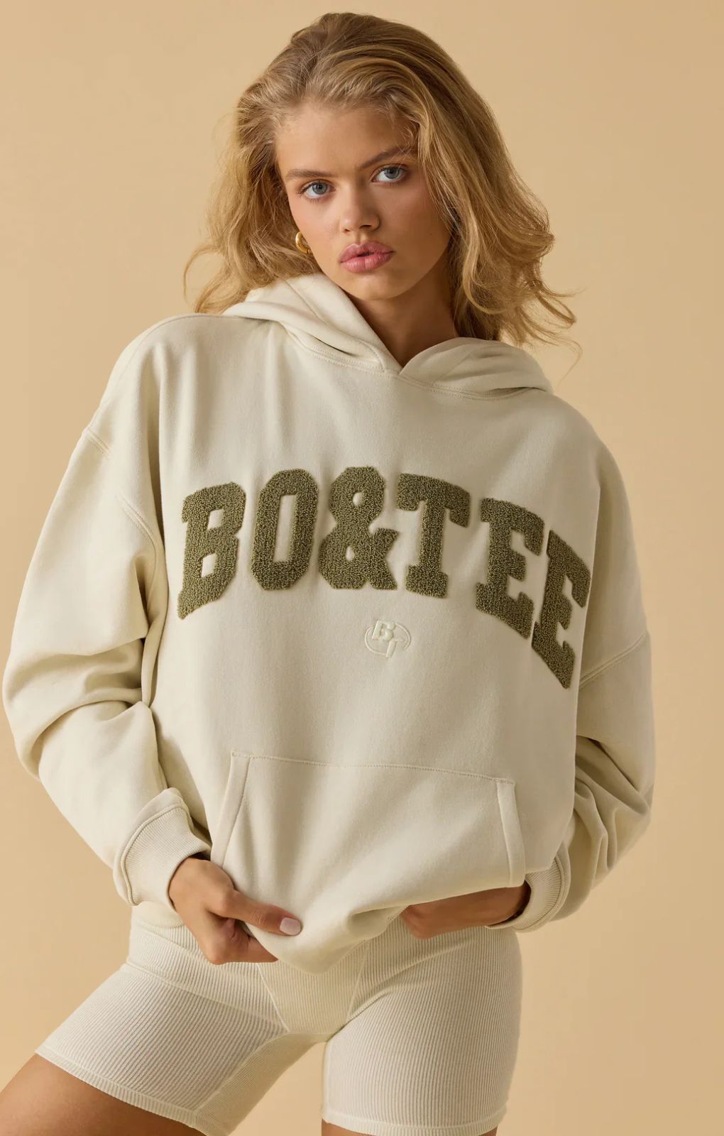 Oh Polly Oversized Hooded Sweatshirt in Bone