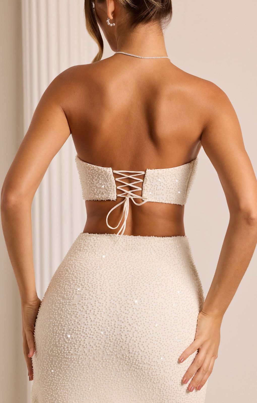 Effortless glamour. A strapless design that exposes the decolletage, the Provence maxi dress is cut from our premium dual layered mesh fabric and hand embellished with delicate seeded beading. An essential style for sparkling on the dancefloor, Provence is complete with statement cut-out detailing across the back and sides.