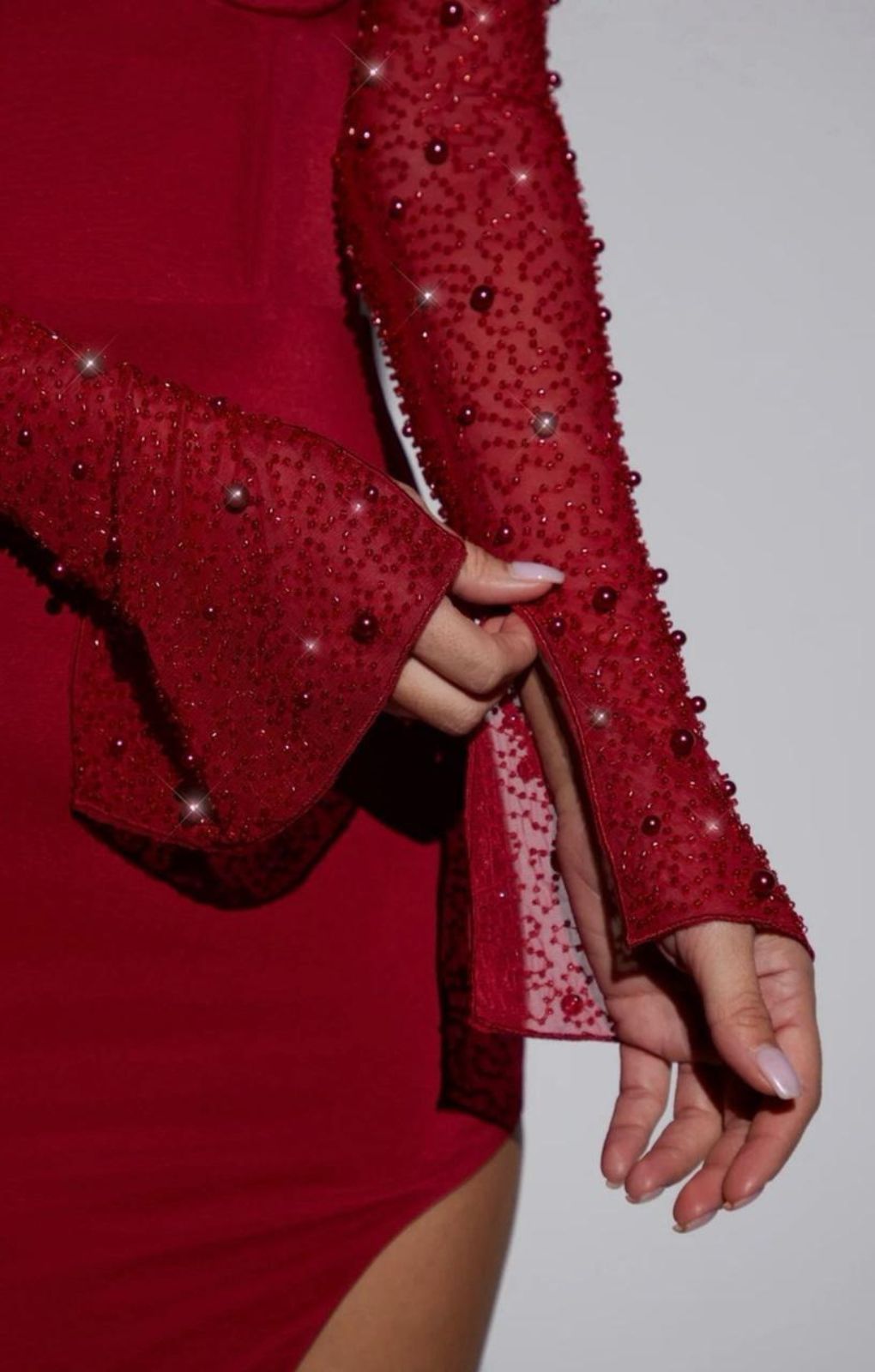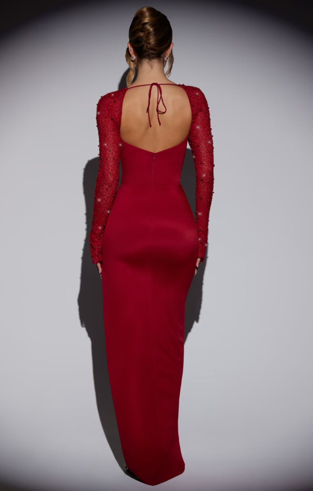 Meet San Marino, the latest silhouette cut to a glamorous maxi length. Perfect for elevating your evening wear wardrobe, the San Marino maxi dress is a bodycon design cut from our lustrous stretch satin fabric that effortlessly hugs your curves. The underwired cups and built in corsetry create a cinched in silhouette whilst the dramatic maxi skirt features a daring thigh high split that exposes the left leg. Complete with the signature semi sheer, embellished sleeves with split flare detailing, San Marino is a must have party style.