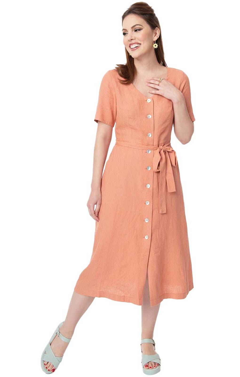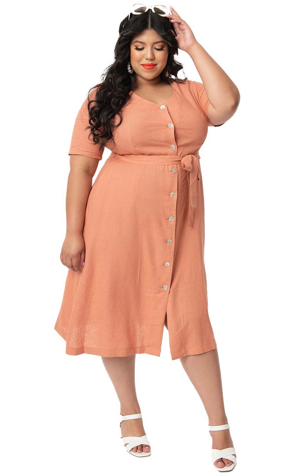 Casual curve dress, perfect for summer weddings or a city break.Features: Button up front Short sleeve