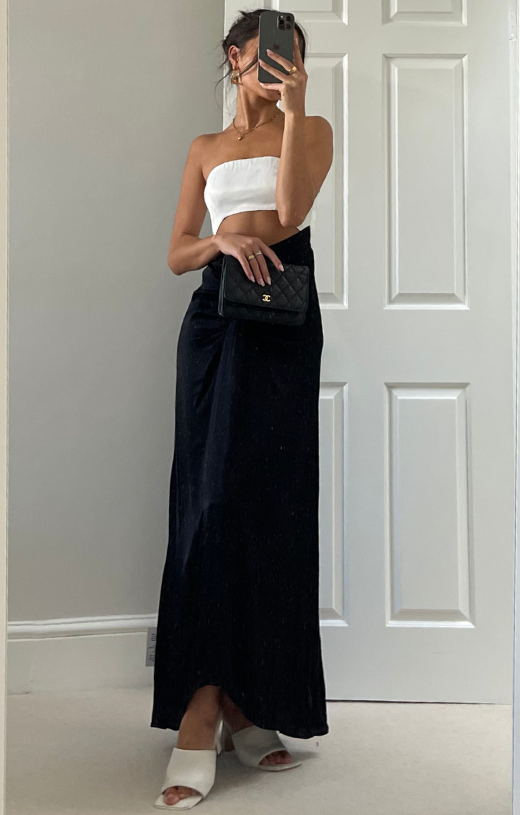 Topshop Colour Block Sarong Bandeau Maxi Dress In Ivory And Black – dresses by Topshop, available to rent from Hirestreet