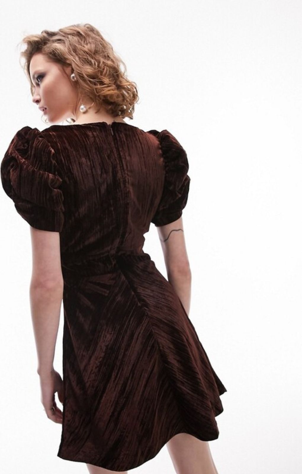 Topshop Crushed Velvet Mini Tea Dress In ChocolateFeaturing: