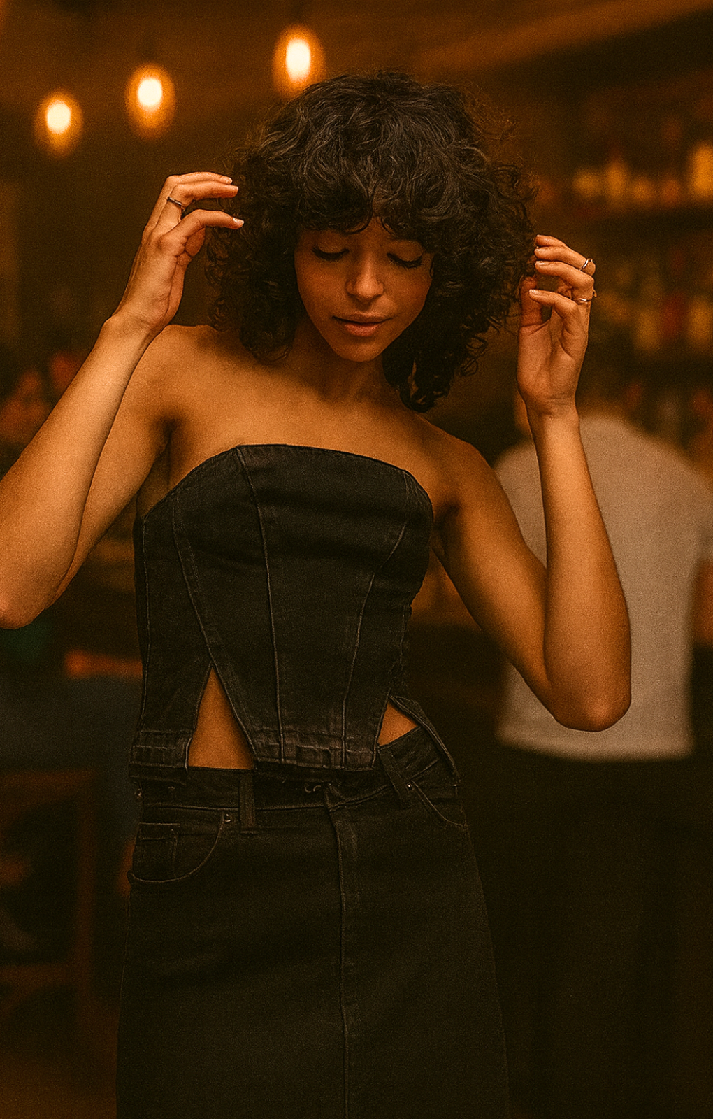 Topshop Denim Corset With Let Down Hem In Washed Black