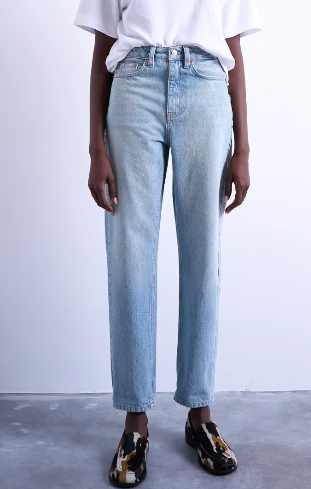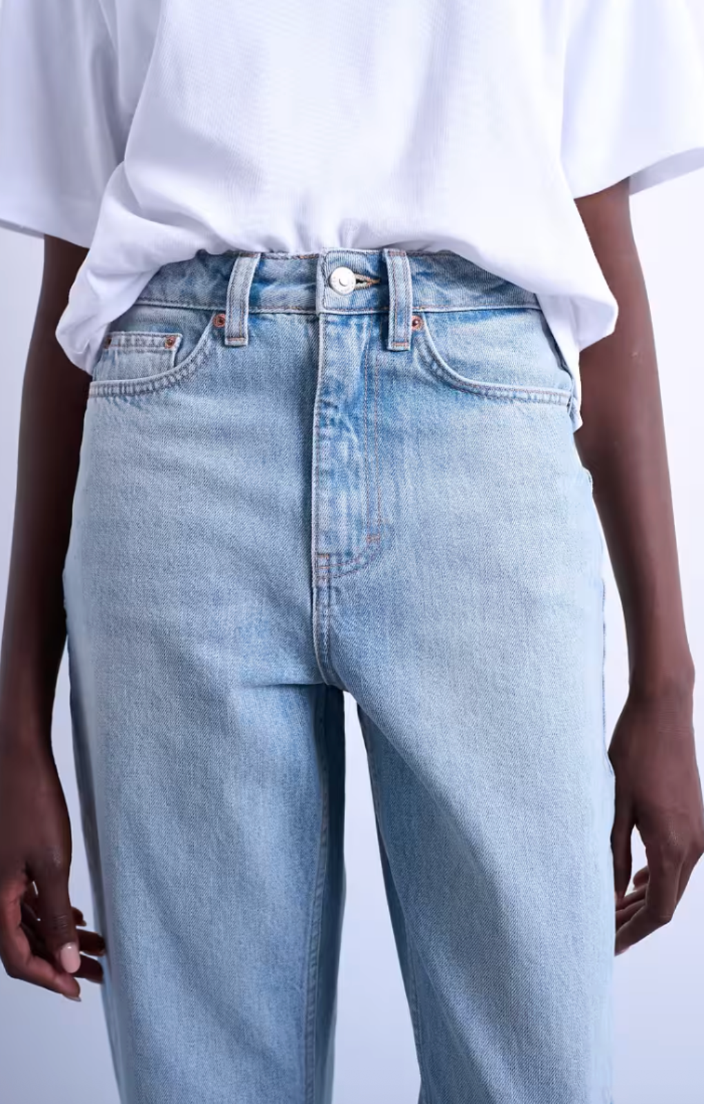 The classic Topshop Original High Rise Mom Jeans In Bleach.
