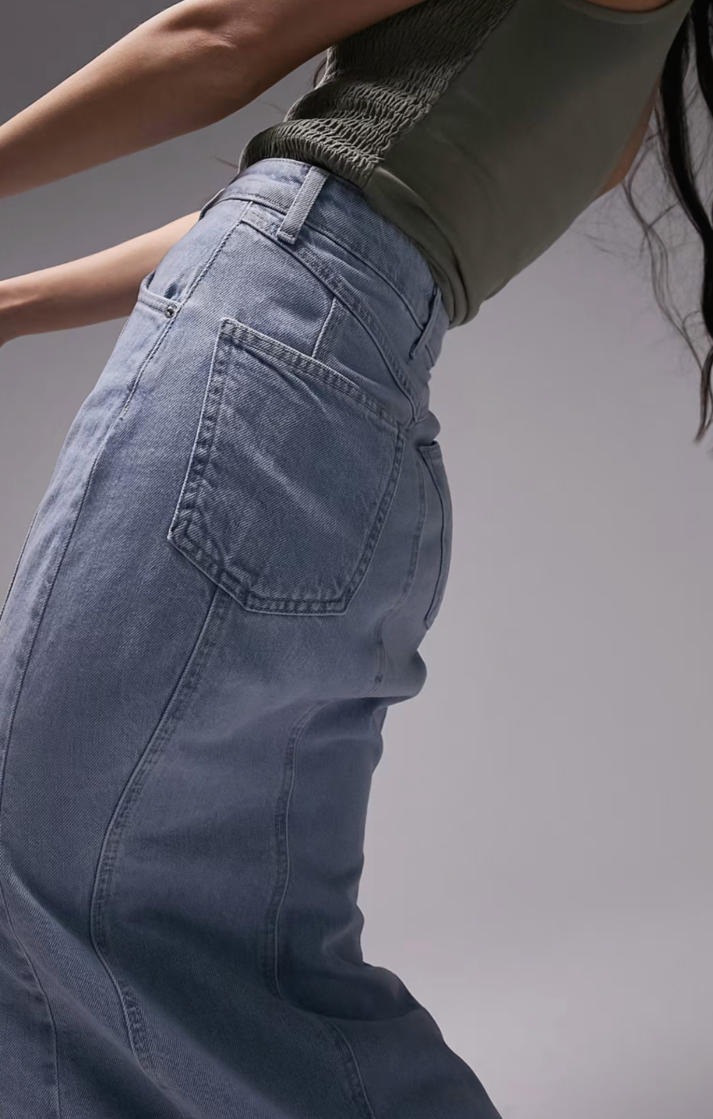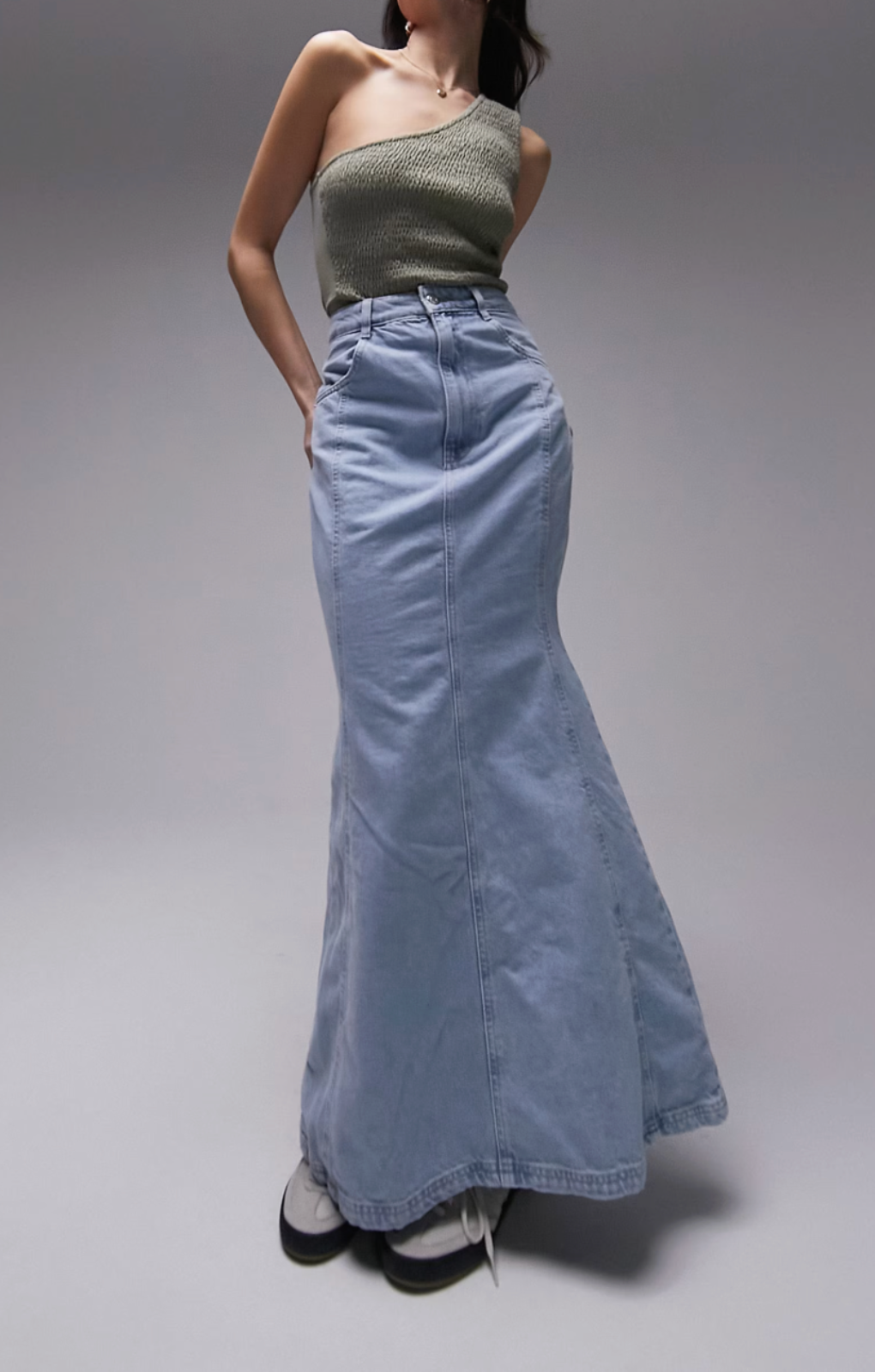 Channel an on trend vibe. Topshop Tall Highwaist Denim Fishtail Skirt In Bleach. Features:
