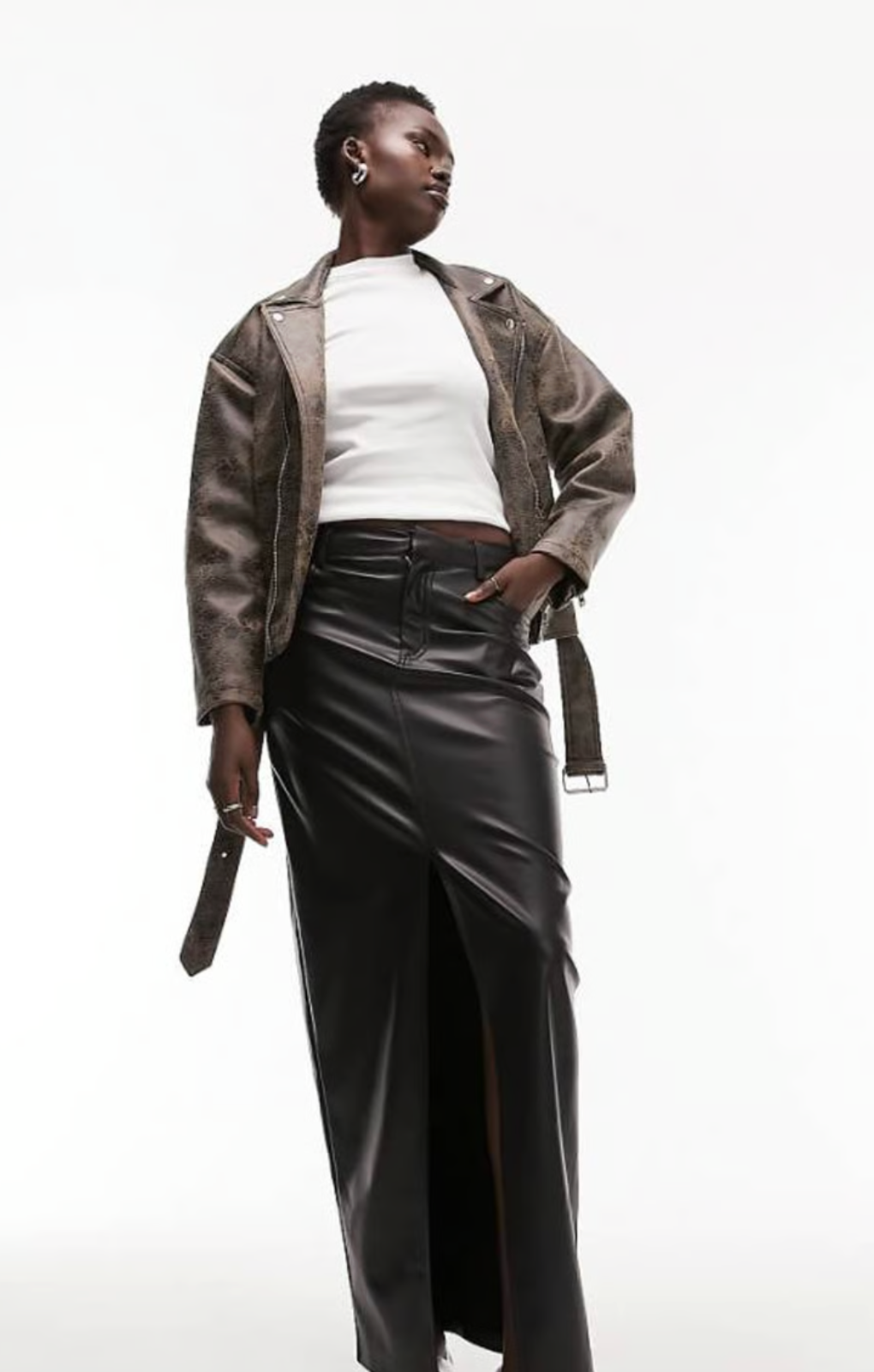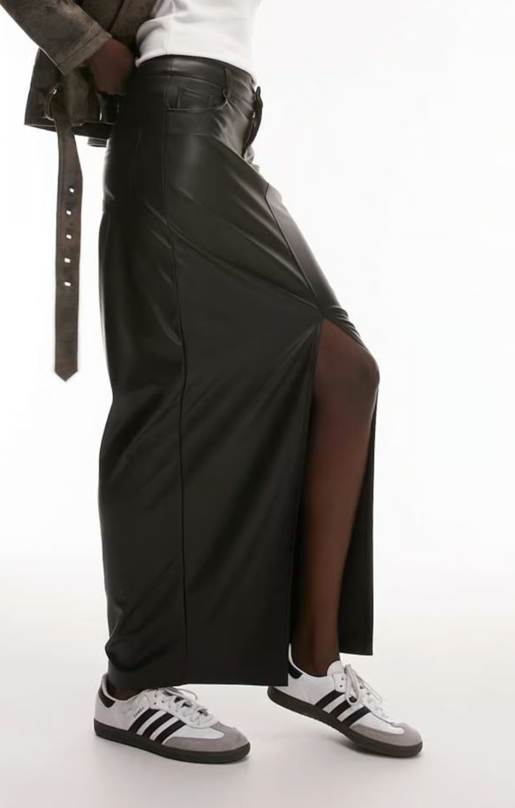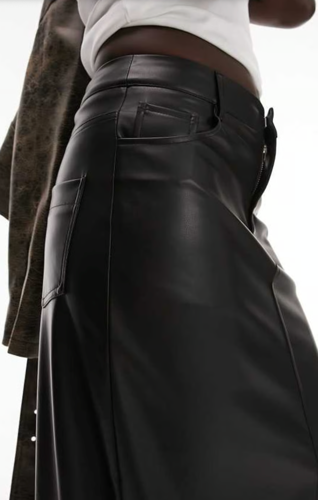 An essential for your next month's rotation. Topshop Tall Leather Look Denim Styled Maxi Skirt In Black. Featuring: