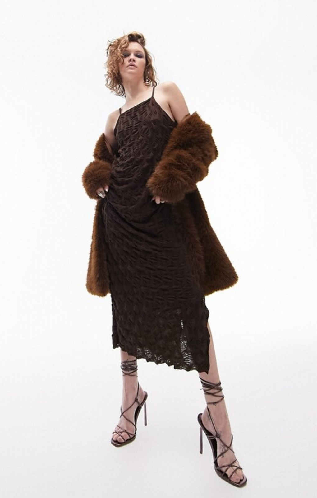 Enjoy Topshop Textured Popcorn Strappy Jersey Midi Dress In Chocolate Featuring: