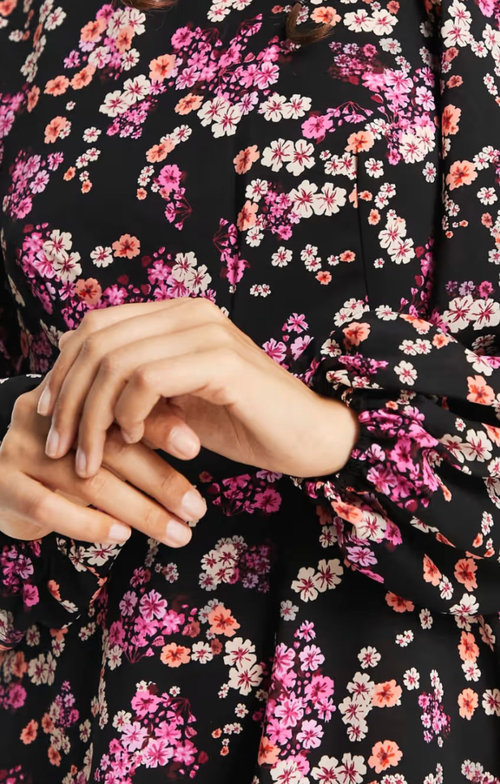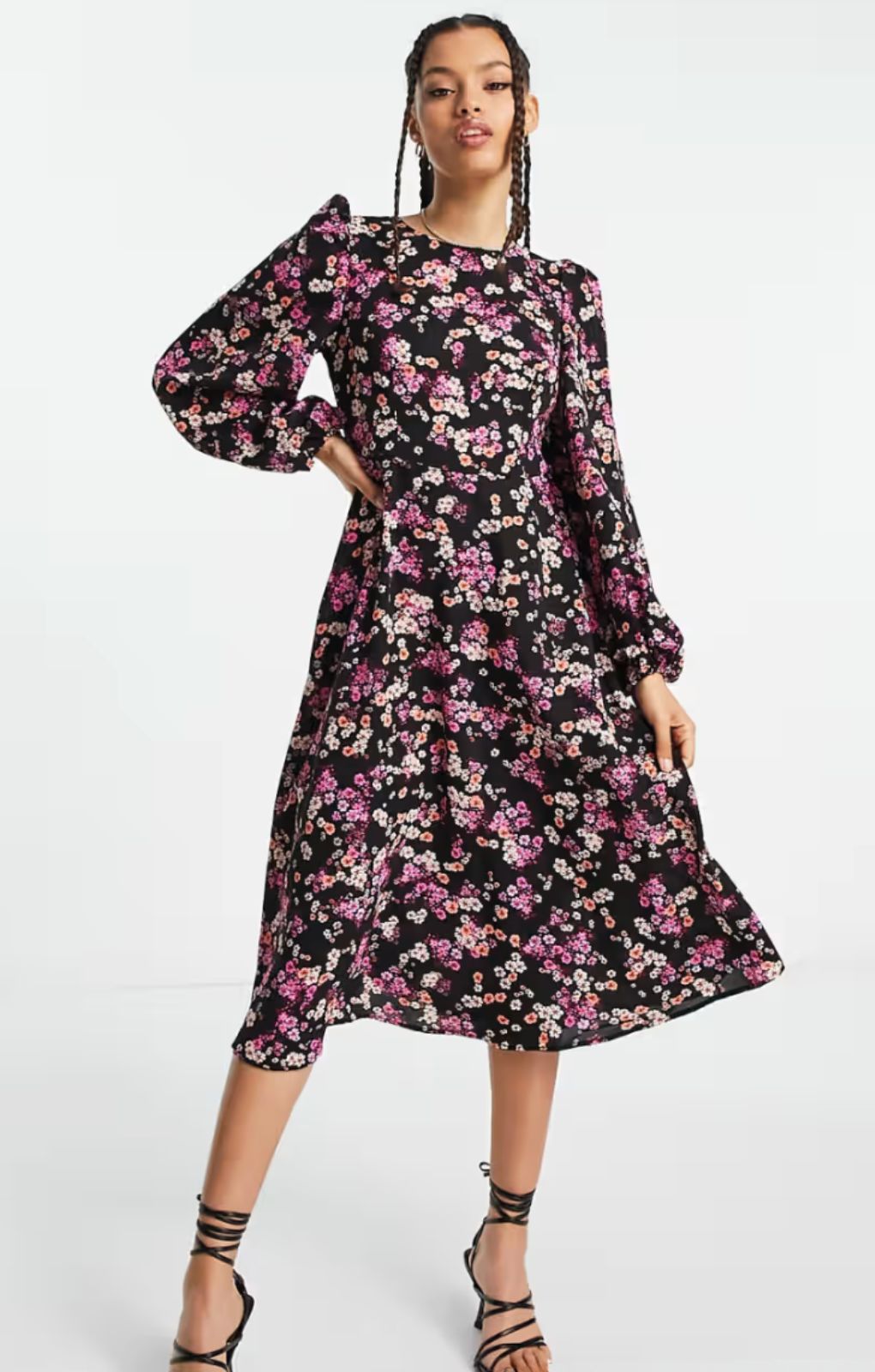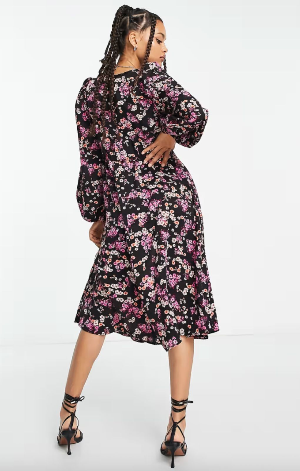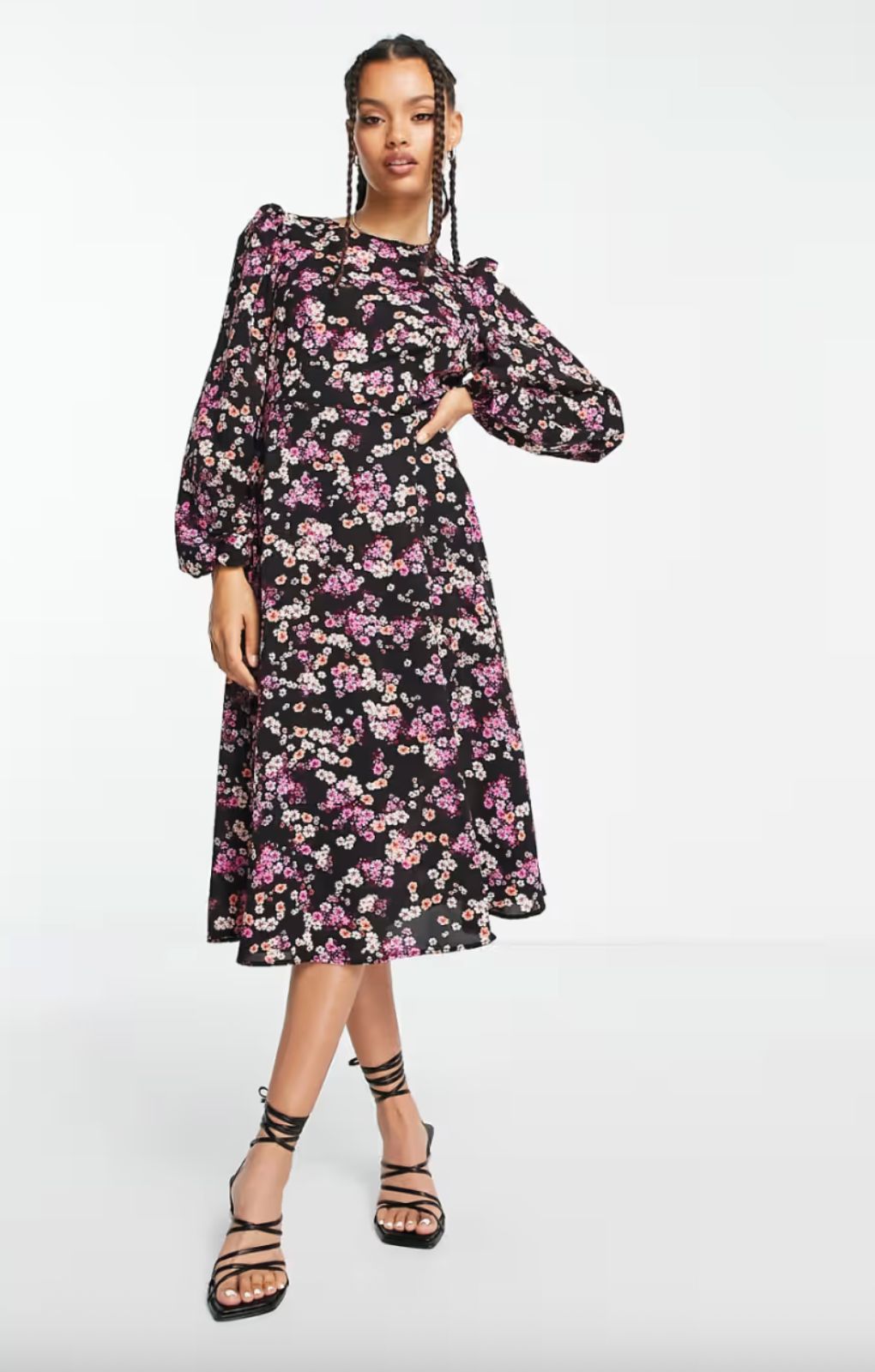 Vero Moda Exclusive Floral Midi Dress With Balloon Sleeve In Floral Print Featuring: