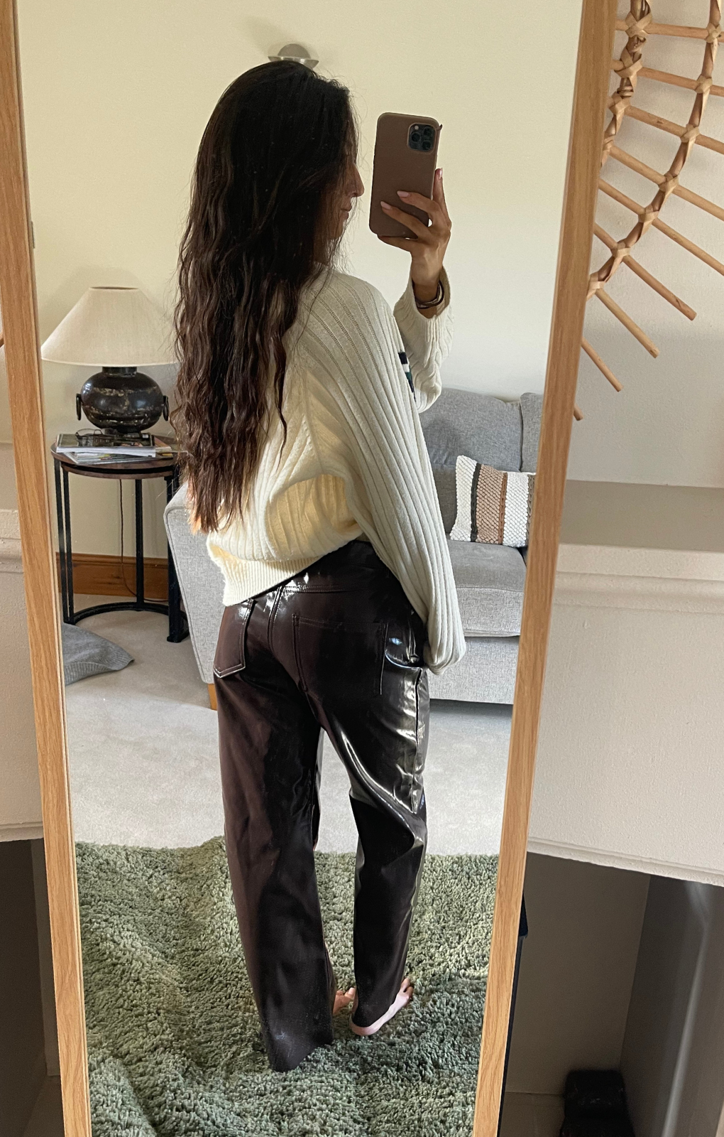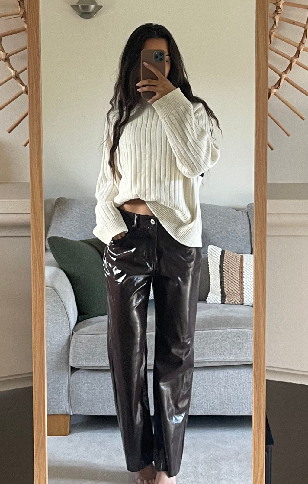 Vero Moda Petite Vinyl High Rise Straight Leg Trousers In BrownFeaturing: