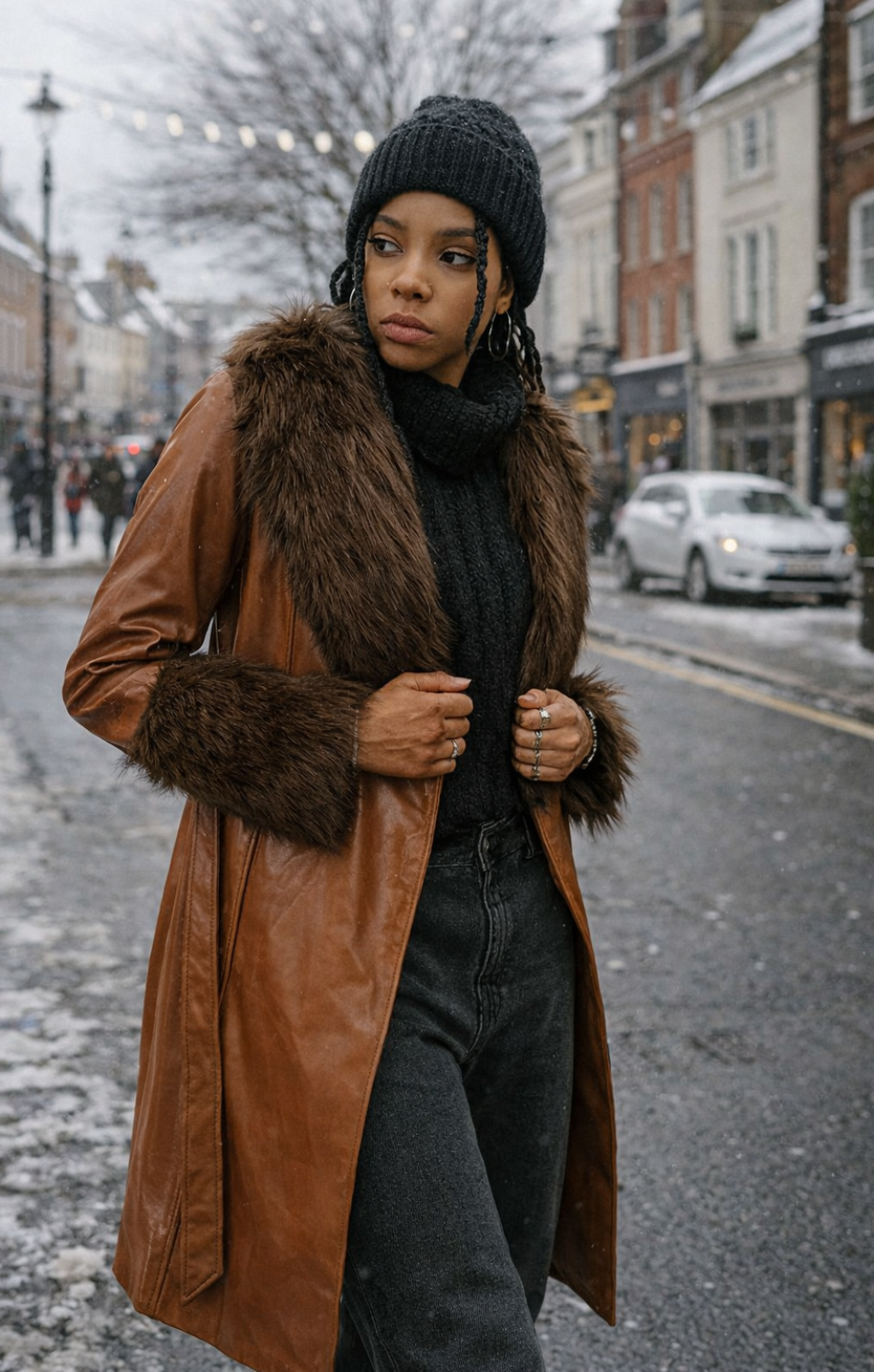 Violet Romance Vinyl Jacket With Faux Fur Trims In Brown Featuring: