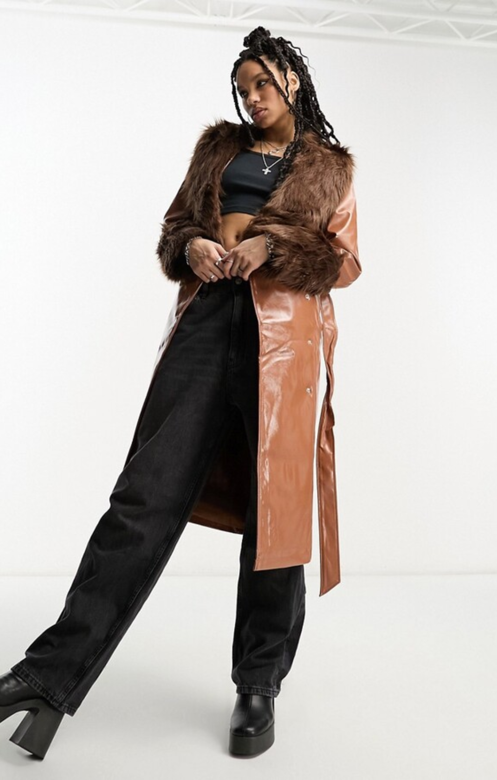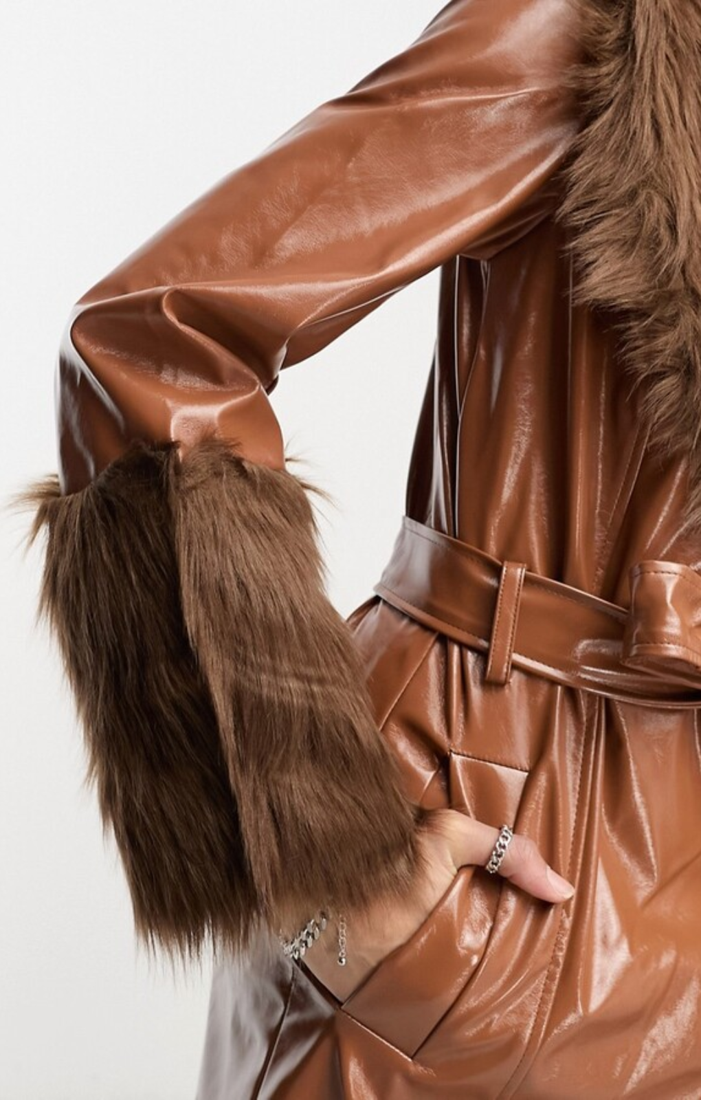 Violet Romance Vinyl Jacket With Faux Fur Trims In Brown Featuring: