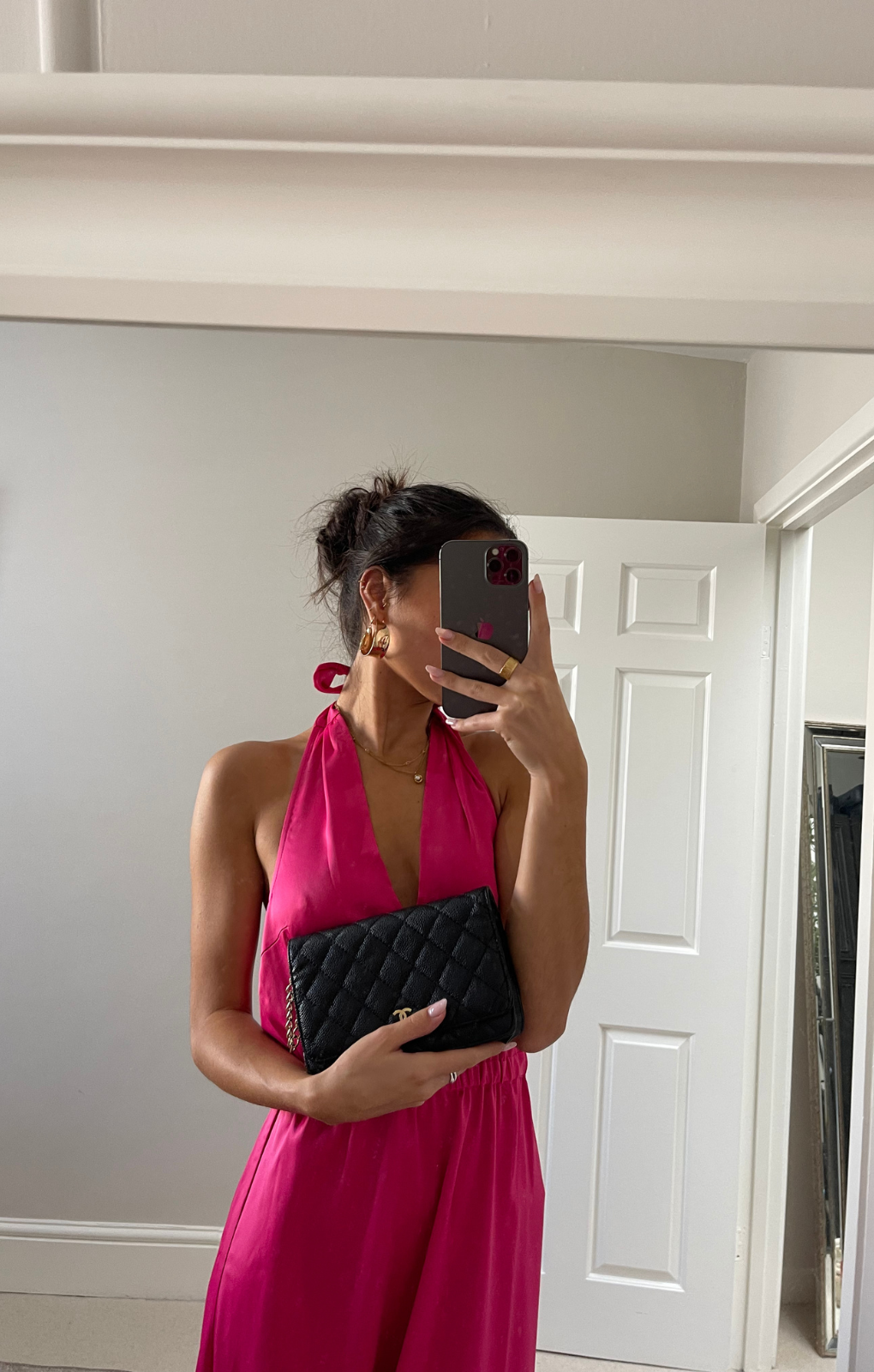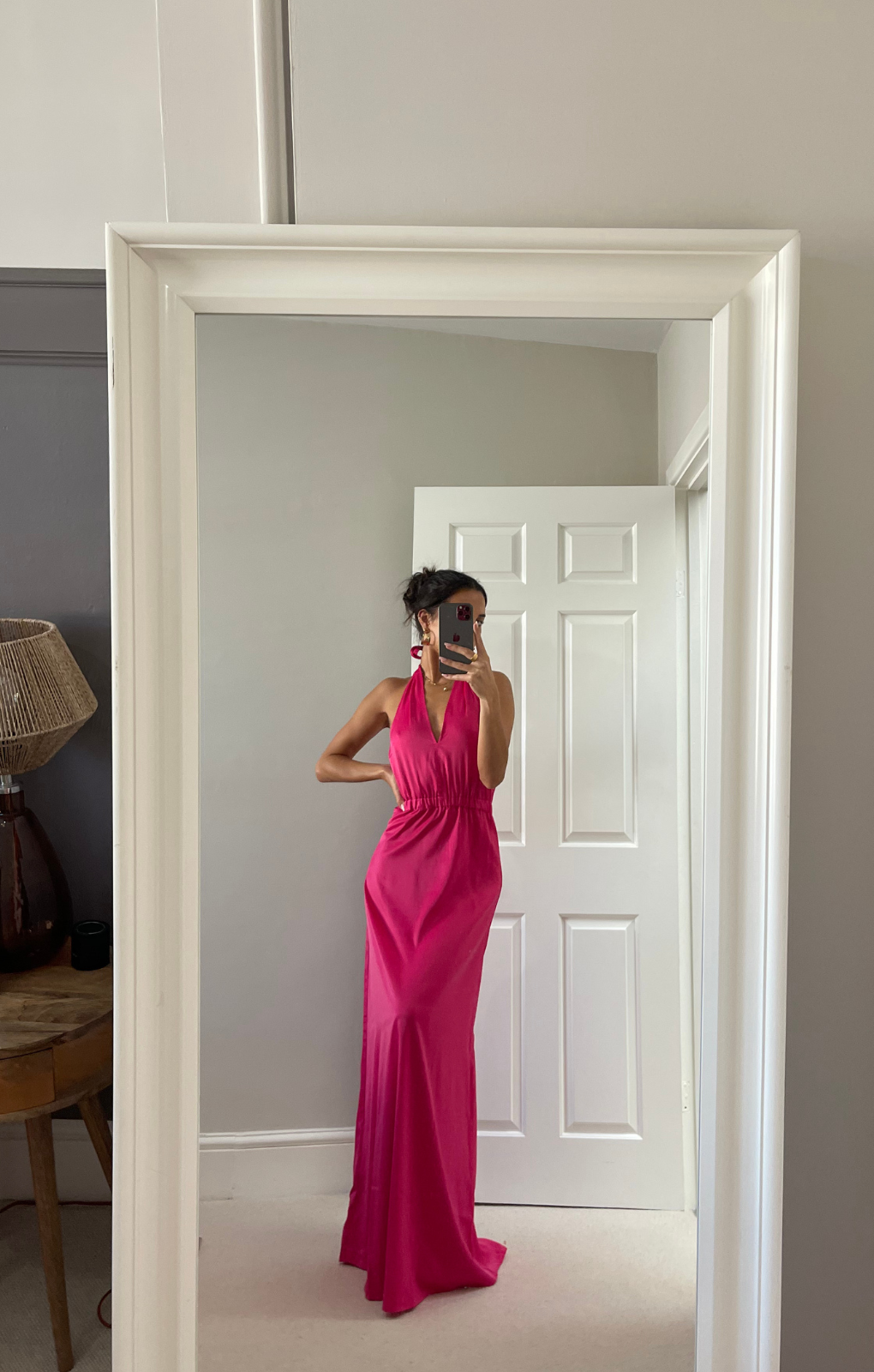 Y.A.S Bridesmaid Satin Multiway Halterneck Maxi Dress In Vibrant Pink Featuring: